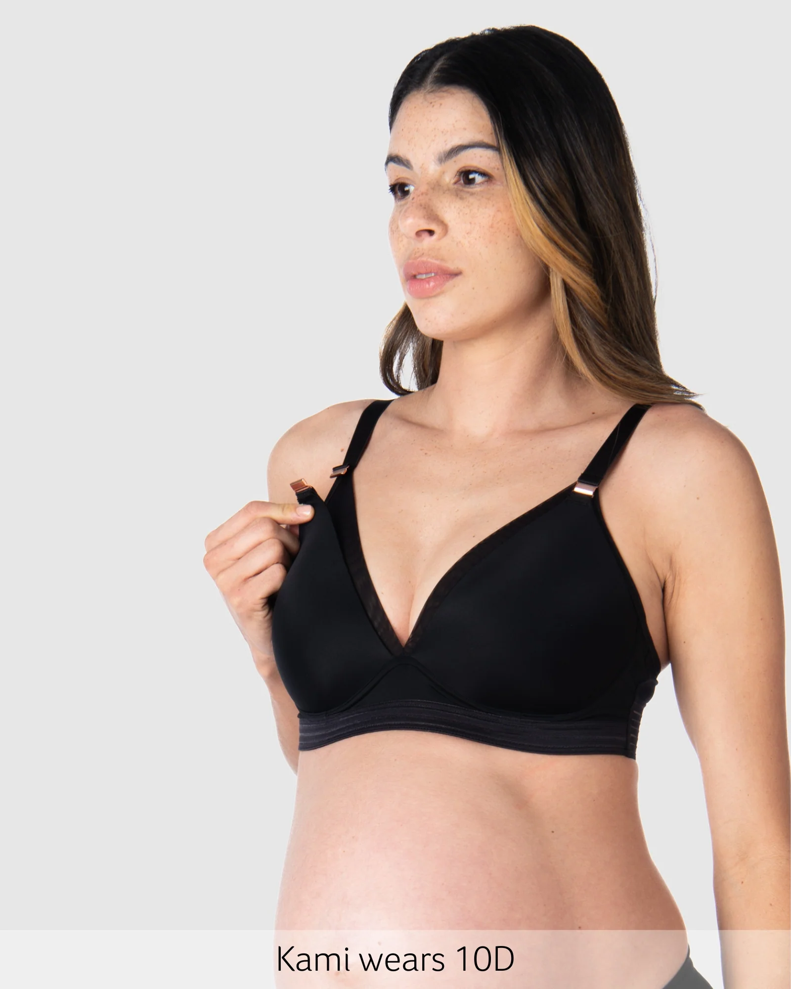 For the mama who does it all—Ambition is the wirefree T-shirt nursing bra that brings comfort, shape, and style. With smooth contour cups, mesh A-frame support, and luxe rose gold magnetic clips, this maternity essential is sleek, modern, and designed to be seen.