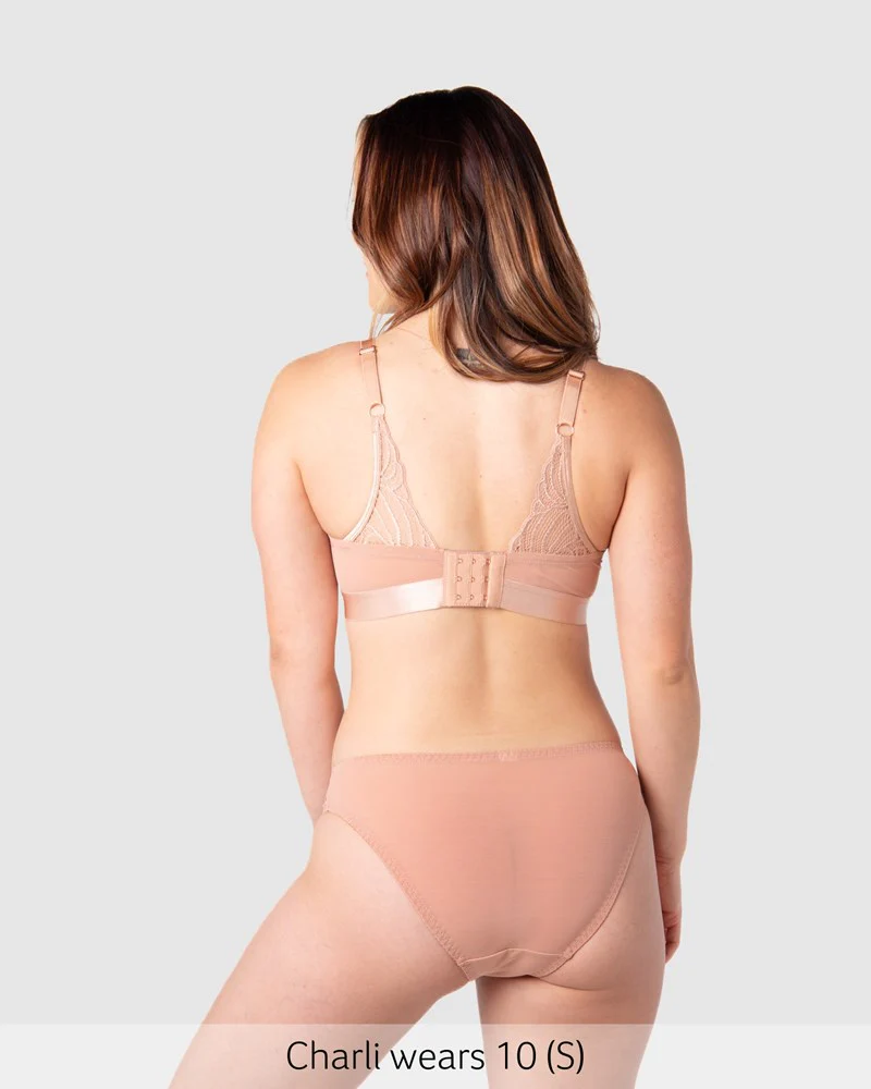Slip into the Warrior Bikini Brief — where comfort meets fierce femininity. Warrior lace and a breathable mesh back create a stunning silhouette that moves with your changing body. Perfectly designed to sit low and snug under your pregnancy bump, these briefs pair effortlessly with our viral Warrior Nursing Bra for a seriously sexy, confidently you lingerie set.
